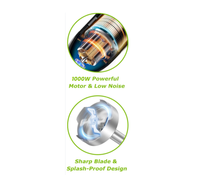 MIUI 1000W Hand Immersion Blender – Powerful 4-in-1 Stainless Steel Food Mixer